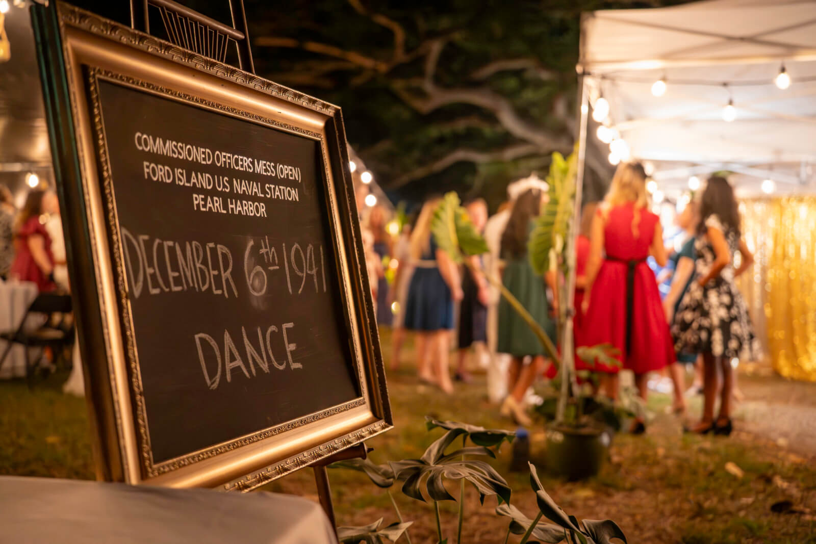 Attendees dress in 1940s-era clothing, and this year the evening included music by the United States Air Force Band of the Pacific and the U.S. Marine Corps Forces Pacific Band, echoing the sounds that filled neighboring Pearl Harbor that night during the “Battle of Music,” when individual ships fielded their own bands and competed at Bloch Arena.