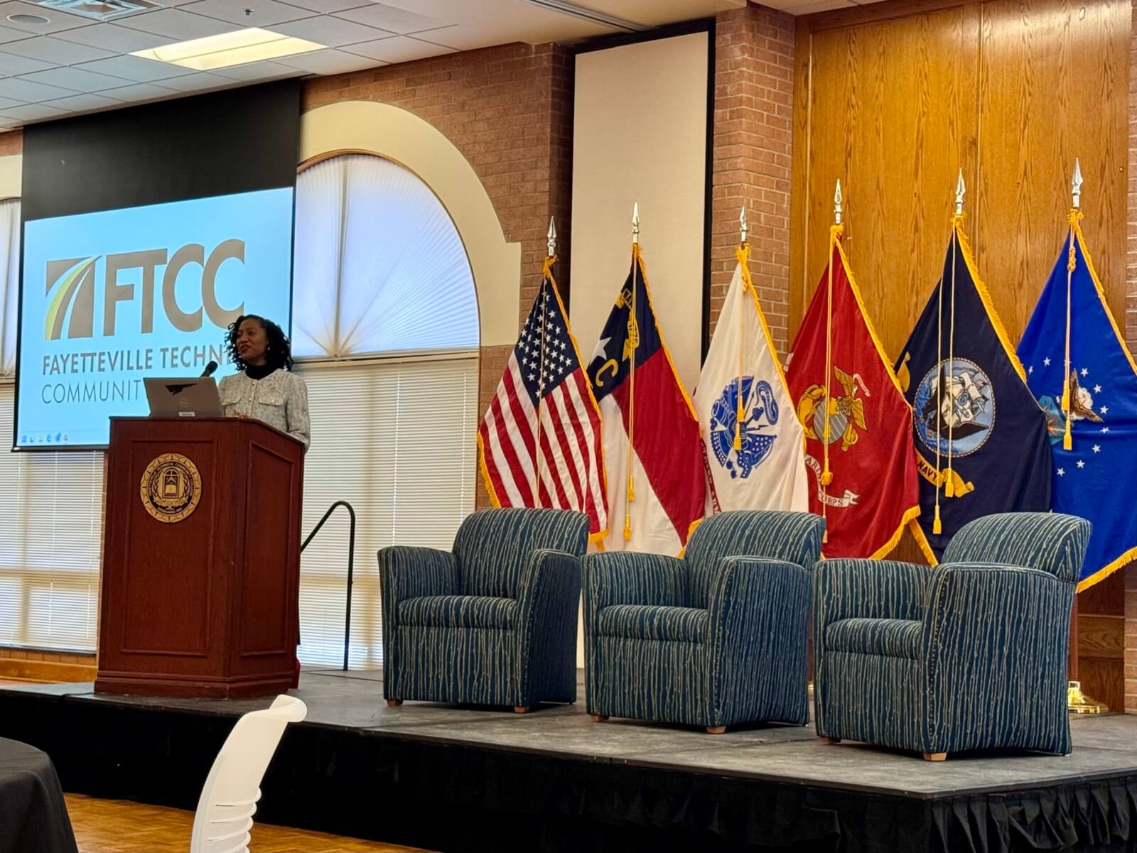 Secretary Jocelyn Mitnaul Mallette of North Carolina Department of Military and Veterans Affairs at the Military Community Childcare Roundtable 2026 in North Carolina. Photo courtesy of Abby Ammons.
